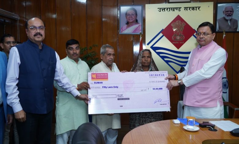 उपनल के माध्यम से सेवारत तीन कार्मिकों की दुर्घटना में मुत्यु होने के उपरान्त उनके आश्रितों को मुख्यमंत्री श्री पुष्कर सिंह धामी ने शुक्रवार को सचिवालय में 50-50 लाख की सहायता राशि के चेक प्रदान किये। उपनल के माध्यम से विद्युत वितरण खण्ड, जसपुर में तैनात श्री बृजेश कुमार की जनवरी 2025, ब्रिडकुल देहरादून में तैनात श्री तसलीम की नवम्बर 2024 और विद्युत वितरण खण्ड हरिद्वार में तैनात श्री संजीव कुमार की फरवरी 2025 में सड़क दुर्घटना में मृत्यु हो गई थी।