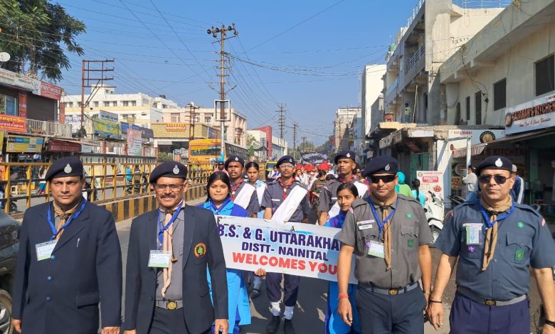 मंगलवार को लक्ष्मी शिशु मंदिर हल्द्वानी में भारत स्काउट्स एवं गाइड्स, जिला संस्था नैनीताल के तत्वाधान में आयोजित चार दिवसीय तृतीय सोपान प्रशिक्षण एवं जांच शिविर के अंतर्गत एक जागरूकता रैली का आयोजन किया। इस अवसर पर बतौर मुख्य अतिथि वरिष्ठ पुलिस अधीक्षक नैनीताल मंजुनाथ टीसी द्वारा दीप प्रज्वलन कर कार्यक्रम का शुभारम्भ किया गया। इस अवसर पर अपने संबोधन में मुख्य शिक्षा अधिकारी / जिला मुख्यायुक्त स्काउट गाइड द्वारा मुख्य अतिथि एवं आगन्तुको का स्वागत करते हुए संस्था के इतिहास एवं नैनीताल जिला संस्था के क्रियाकलापों की जानकारी दी गयी। मुख्य अतिथि एसएसपी नैनीताल द्वारा अपने संबोधन में स्काउट गाइडों के कार्यकलापो की प्रशन्सा करते हुए जिला मुख्यायुक्त के नेतृत्व में संस्था के उज्ज्वल भविष्य की कामना की गयी। इस अवसर पर संस्था के जिलाध्यक्ष नरेन्द्र शाह द्वारा किया गया।