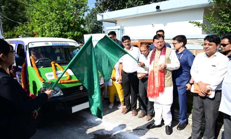 हंस फाउंडेशन देहरादून के सहयोग से प्रदत्त 08 व हिन्दुस्तान जिंक व ममता संगठन के संयुक्त सौजन्य से 1 मोबाईल स्वास्थ्य सेवा वाहन को मुख्यमंत्री श्री पुष्कर सिंह धामी ने गुरुवार को निजी आवास, नगला तराई खटीमा से हरी झण्डी दिखाकर रवाना किया।