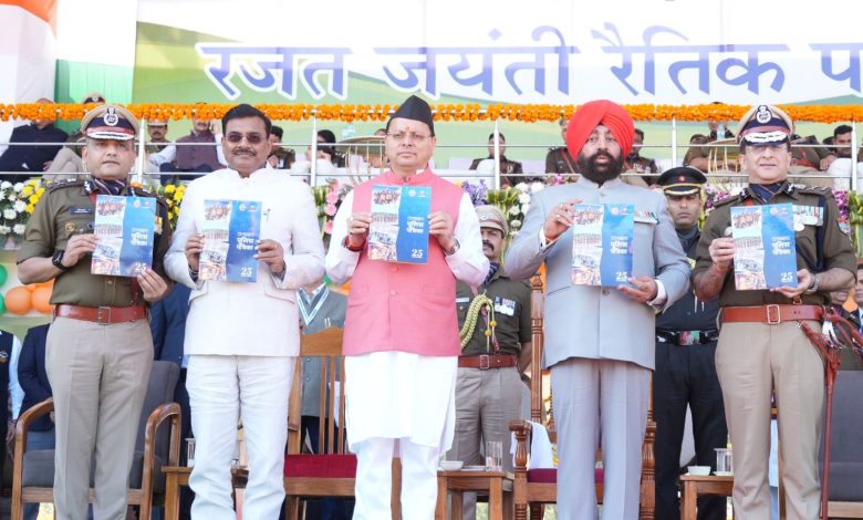 देहरादून, 07 नवंबर।उत्तराखण्ड राज्य स्थापना के रजत जयंती समारोह के अवसर पर गुरुवार को पुलिस लाइन, देहरादून में आयोजित कार्यक्रम में राज्यपाल लेफ्टिनेंट जनरल गुरमीत सिंह (से नि) एवं मुख्यमंत्री श्री पुष्कर सिंह धामी ने प्रतिभाग किया। राज्यपाल ने इस अवसर पर आयोजित रैतिक परेड का निरीक्षण कर सलामी ली। राष्ट्रीय गीत ‘‘वंदे मातरम’’ के 150 वर्ष पूर्ण होने के अवसर पर कार्यक्रम की शुरुआत वंदे मातरम गीत से हुई। इस अवसर पर राज्यपाल एवं मुख्यमंत्री द्वारा ‘‘उत्तराखण्ड पुलिस पत्रिका-2025’’ का विमोचन एवं रजत जयंती पदक के प्रतीकात्मक चिन्ह का अनावरण किया गया।