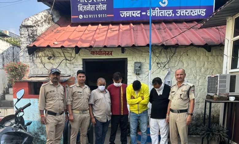 1- दिनेश बिष्ट पुत्र गोविंद सिंह बिष्ट निवासी विक्टोरिया नंबर 1. गैर वैशाली थाना मुखानी जिला नैनीताल, 2. विपिन चंद्र कांडपाल पुत्र स्वर्गीय गोविंद बल्लभ कांडपाल निवासी विक्टोरिया नंबर 1 गैर वैशाली नियर चोफला थाना मुखानी नैनीताल, 3. देवेंद्र सिंह पुत्र सुबोध कुमार निवासी गैस गोदाम रोड भूमिया मंदिर के पास थाना मुखानी, 4. हरिचंद तिवारी पुत्र भोला दत्त तिवारी निवासी तिवारी कॉलोनी विक्टोरिया नंबर 1 गैर वैशाली थाना मुखानी के *कब्जे से फड़ में से 52 पत्ते ताश व नकदी 37500 रुपए नकद बरामद* हुए। पकड़े गए व्यक्ति को सार्वजनिक स्थान पर जुआ खेलते हुए गिरफ्तार किया गया। आरोपियों के विरुद्ध थाना मुखानी में धारा 13 सार्वजनिक जुआ अधिनियम के अंतर्गत अभियोग पंजीकृत किया गया हैl